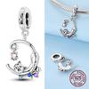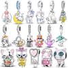 Copper Charms Cute Black Cat Shiny Star Moon Beads Pendants For Original Bracelet Fine Jewelry For Women Gifts Diy