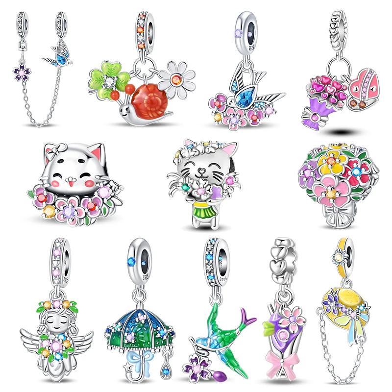 Copper Bouquet Of Flowers Cat Swallow Snail Butterfly Pendant Charms Beads Fit Bracelet Diy Birthday Jewelry Gift