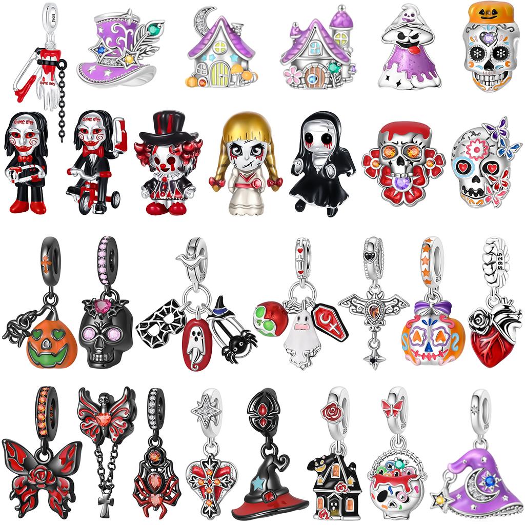 New Halloween Copper Skull Charms Luminous Pumpkin Bat Ghost Coffin Bead Pendant Necklace Bracelet Diy Jewelry Gift