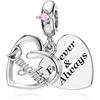 Copper Mother Sisters Daughter Friend Pink Heart-Shaped Charm Pendant Fit For Original Pendant Bracelet Diy Women'S Jewelry
