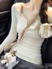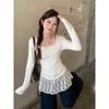 Lace U-neck floral splicing fake two-piece top spring slim-fitting sweet and spicy inner bottoming shirt long-sleeved T-shirt women