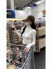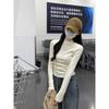 Vintage front shoulder top women's spring design pleated card waist shirt semi-turtleneck inner bottoming shirt