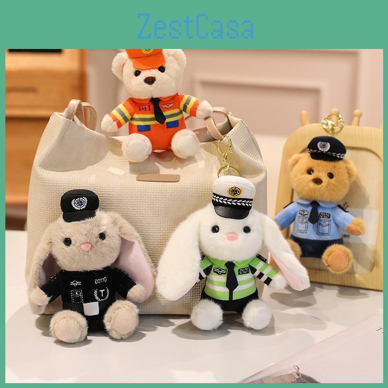 Plush Police Rabbit Keychain With Pp Cotton Filling For Kids And Collectors