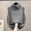 Otoño Invierno Coreano Color Sólido Solapa Sin Mangas Versátil Casual Chaleco Tejido Para Mujer