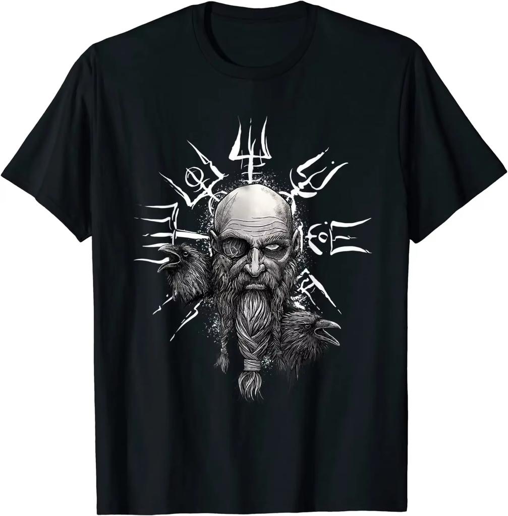 Fashion Norse Myth Vegvisir Rune Odin Raven Hugin and Munin T-Shirt 100% Cotton O-Neck Summer Short Sleeve Casual Mens T-shirt