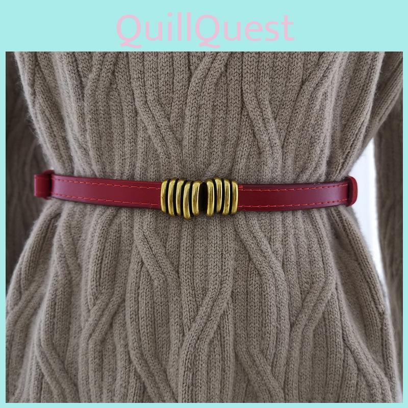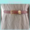 This genuine leather womens waist belt features a slim profile, crafted from durable two-layer cowhide. The alloy gold buckle with a sleek push-stud closure enhances its modern, fashion-forward design. Ideal for dressing up casual outfits or accentuating summer dresses. Wipe clean with a damp cloth to maintain its finish.