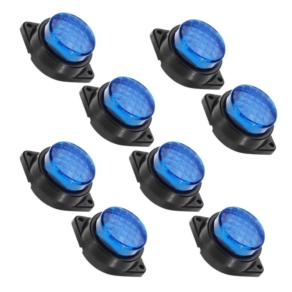 8-Pcs 24V LED Blue Side Marker Trailer Lights – Waterproof Round Marker Lamps for Semi Trucks, Freightliner, Cargo & Universal Trailers