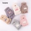 Korean Cartoon Fashion Cat Scratch Flip Gloves for Women Thick Velvet Warm Gloves Daily Office Student Writing Finger Gloves