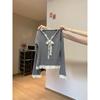 V-neck gentle lace knitted sweater spring pure desire slim-fit backing sweater bow inside top