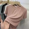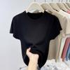 Gentle wind pit strip round neck with knitted short-sleeved women's summer soft waxy and thin solid color temperament bottoming top
