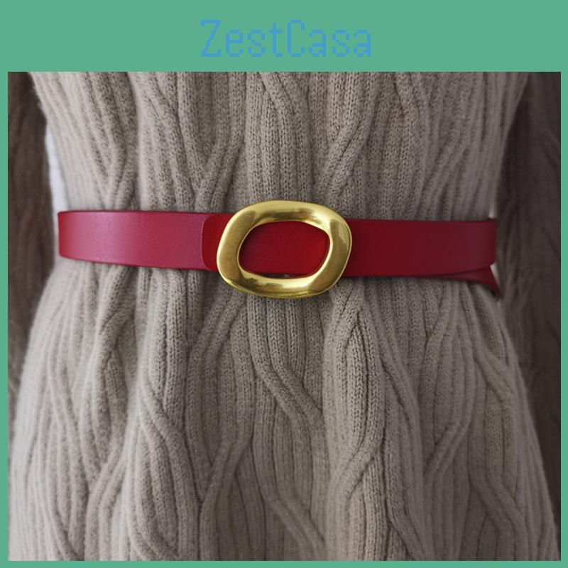 Leather Wide Belt For Women With Metal Snap Buckle For Casual Wear