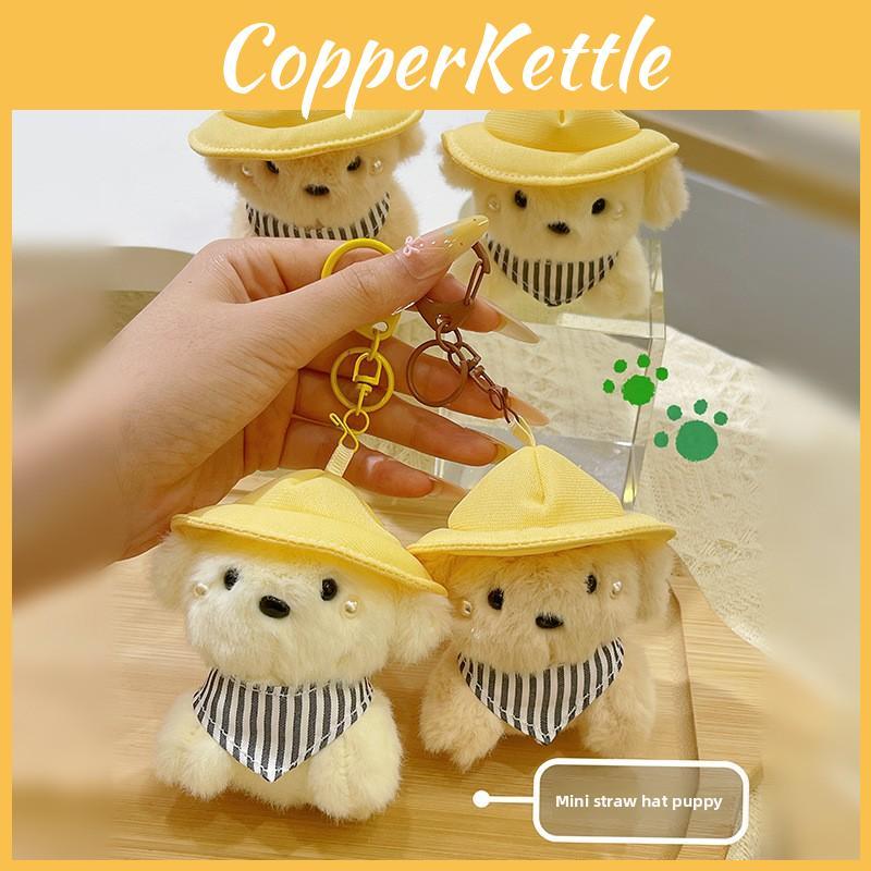 Straw Hat Dog Plush Keychain With Cute 3d Design For Bag Decor
