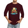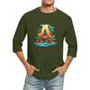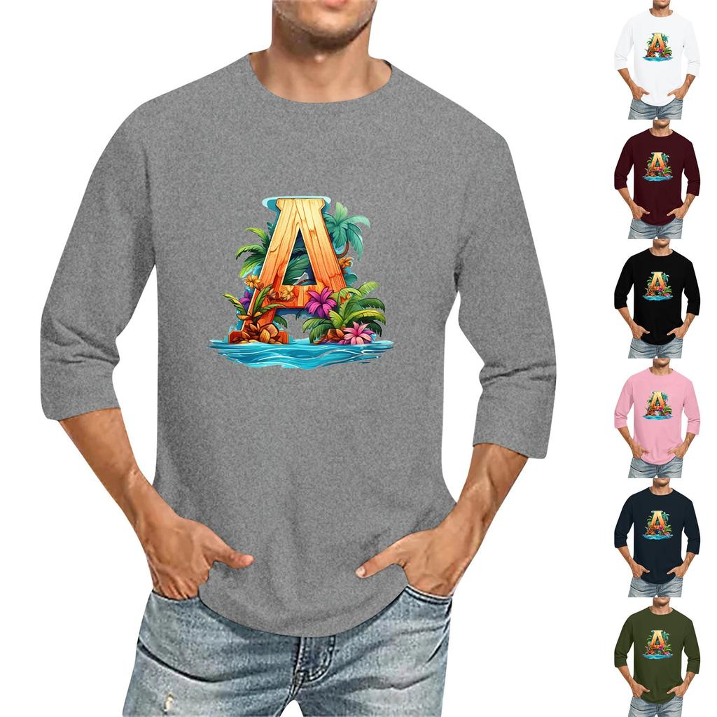 Camiseta de manga tres cuartos con cuello redondo y color liso para hombre
