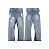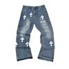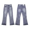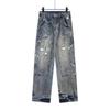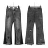 Hand-Painted Splatter Ink Patchwork Drawstring Casual Sweatpants, Micro-Flare Denim, Unisex Long Pants