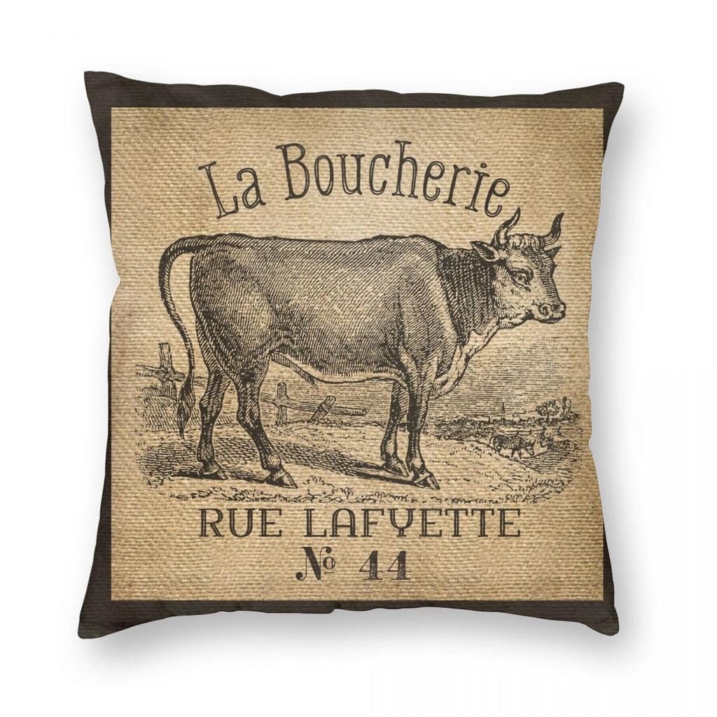 Vaca Publicidad Francesa Funda de Almohada de Arpillera Poliéster Lino Terciopelo Estampado Cremallera Decorativa Funda de Cojín Decorativo Funda de Cojín para Habitación 45x45