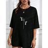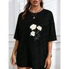 White Oversized T-Shirt With Floral And Bird Print For Casual Wear