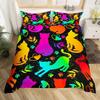 Juego de Funda Nórdica de Gato Colorido Tamaño Queen, Juegos de Ropa de Cama de Gato con Arte Abstracto, Juego de Funda de Edredón de Gato Lindo para Niñas Niños Funda de Colcha
