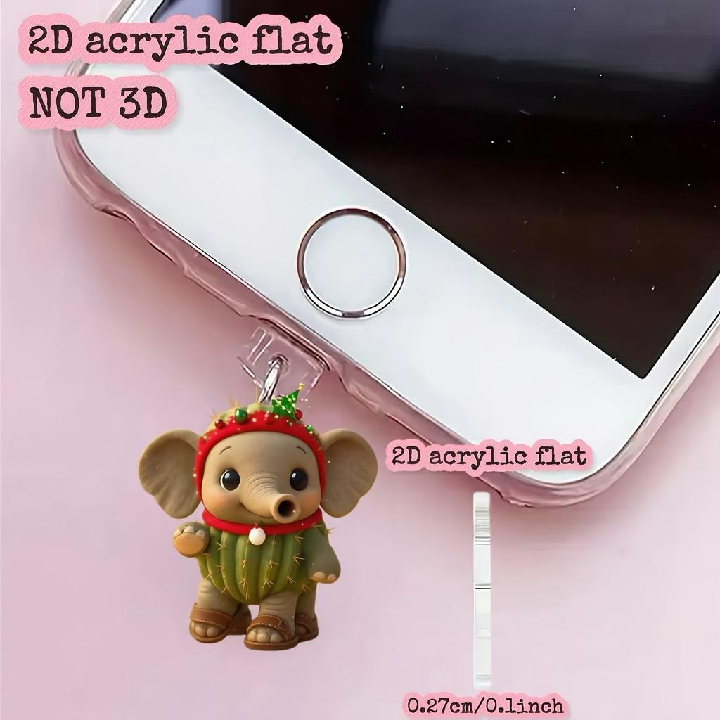 2D Cute Christmas Cactus and Elephant Phone Dust Plug, Adorable Design, Easy to Use, Good Dust Protection, Long-Lasting Protection for the Interface