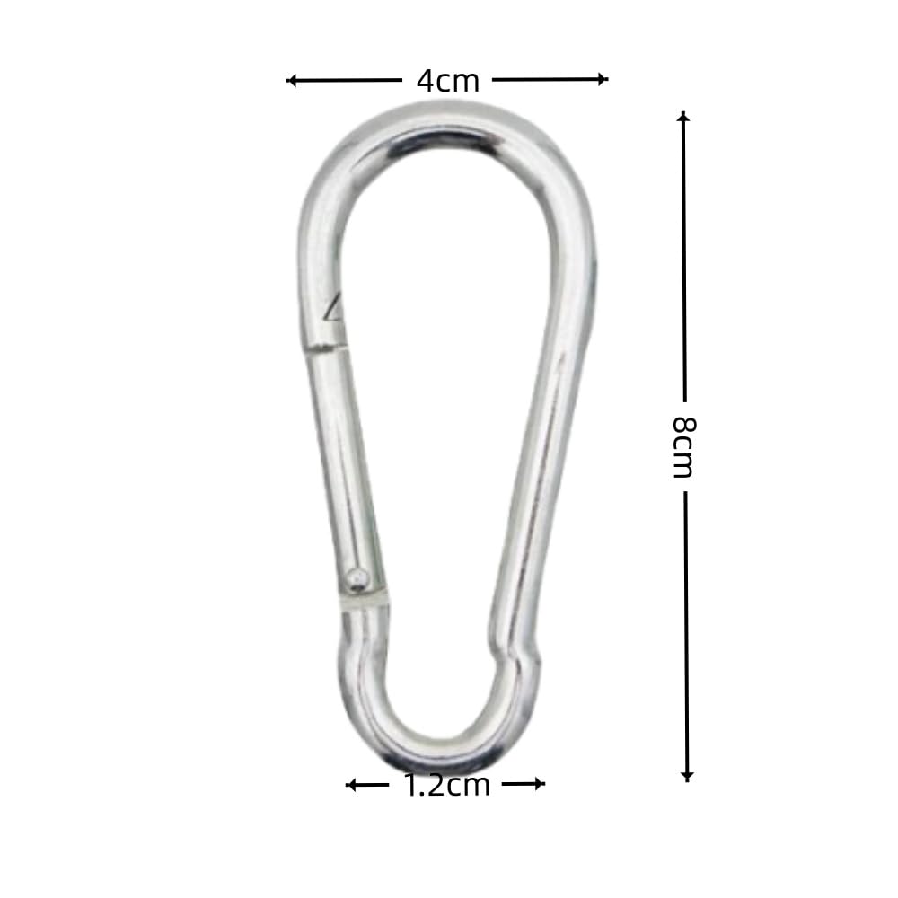 Strong 304 Stainless Steel Carabiner with Spring Hook Keychain, Multifunctional SUS304 Carabiner for Outdoor Travel, Fishing, Trekking, Anti-Fall, Stainless Steel Spring Hook Set (8cm, 6-Pack) Specifications: Product Name: Carabiner, Color: Silver, Material: Iron, Product Size: 4 x 8cm, Packing Slip: 6 Carabiners. Features: Easy one-touch installation. Suitable for connecting keys, kettles, backpacks, ropes, etc. Ideal for outdoor activities, shade nets, waist gear, swings, camping, fishing, and travel. Note: 1. Please allow slight deviation due to manual measurement. 2. Colors may appear slightly different on different screens.