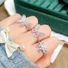 Personality Girls Women Gradient Color Butterfly Open Ring Crystal Finger Rings Fashion Jewelry