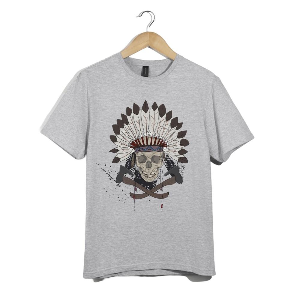 Tribal Skull Feather Headdress T-Shirt – Warrior Style Native Chief Theme Tee