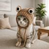 Funny Cat Knitted Hat Braid Design Pet Cosplay Headwear Cute Cat Warm Hat Photo Props