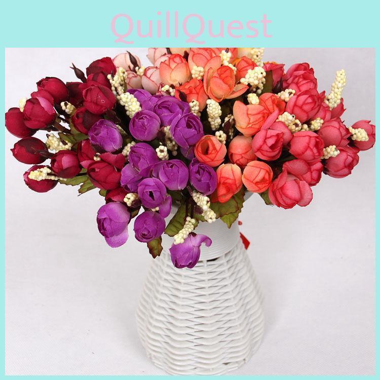 Elegant Artificial Flowers Tea Rose Buds For Wedding Bouquet And Bridal Decor