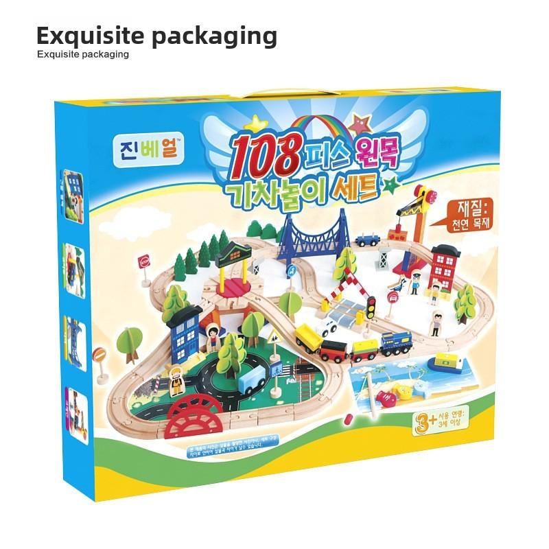 Wooden Track Train Set With 108 Pieces For Kids Educational Playroom