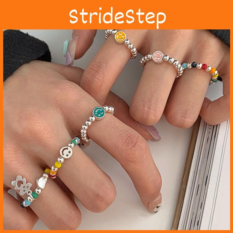Elegant S925 Silver Smiley Face Charm Ring With Colorful Beads For Trendy Women