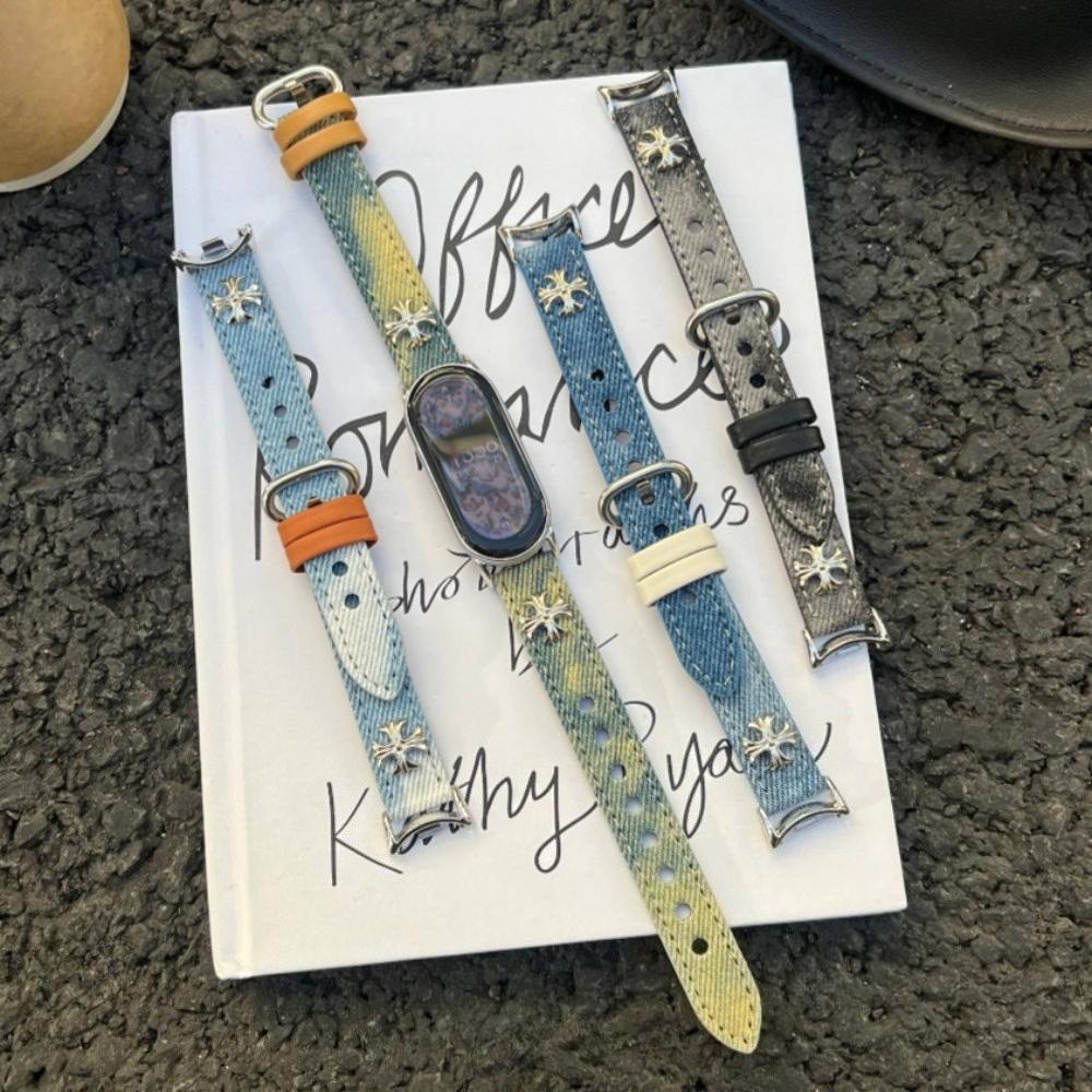 For Xiaomi Smart Band 10 Fashion Women Canvas+Leather Cowboy Cross-dye denim Watch Strap Compatible For Xiaomi Mi Band 10/9/8