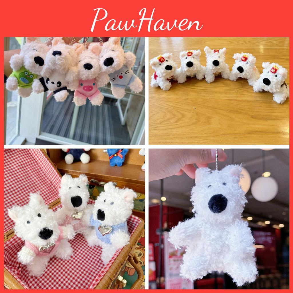 Stuffed West Highland Terrier Plush Keychain With Pearl Chain And Gold Keyring For Bag And Car Accessories