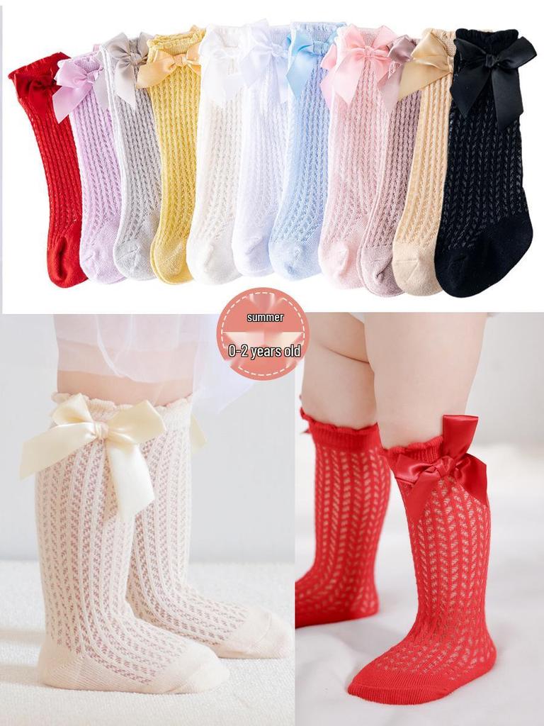 11 Colors Summer Baby Knee-High Mesh Socks with Big Bow, Red, Age 1