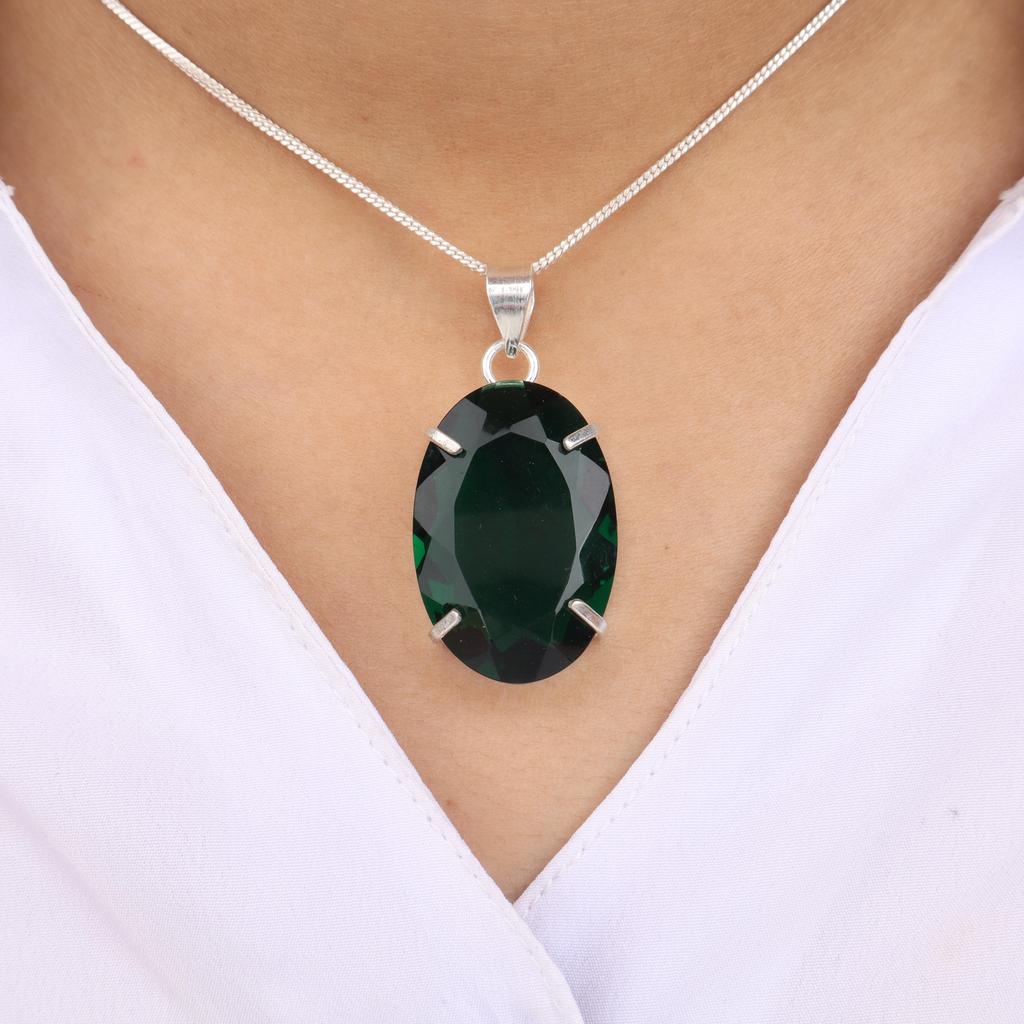 Green Tourmaline Gemstone 925 Sterling Silver Pretty Pendant For Women PP-64-8