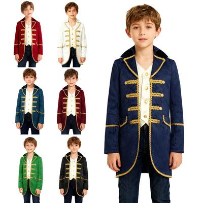 Disfraz de Circo para Niños Abrigo de Terciopelo de Manga Larga Borlas de Trenza Dorada Uniforme de Actuación de Guardia de Honor de Equipo de Tambores Trompetas