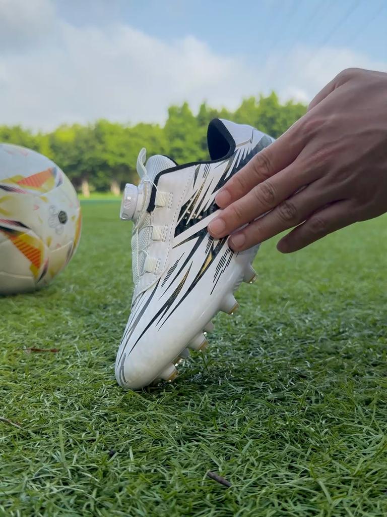 Botas de Fútbol Antideslizantes con Tacos para Niños para Poner y Quitar Fácilmente Zapatos de Fútbol con Botón Giratorio Zapatos de Entrenamiento Zapatos de Fútbol para Césped Artificial