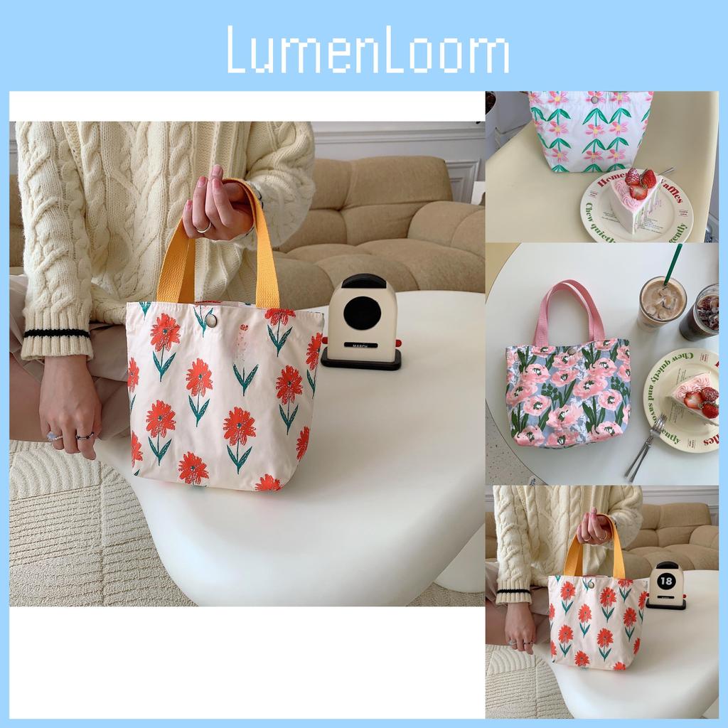 Charming Floral Cotton Tote Lunch Bag Adorable Handheld Canvas Bento Bag