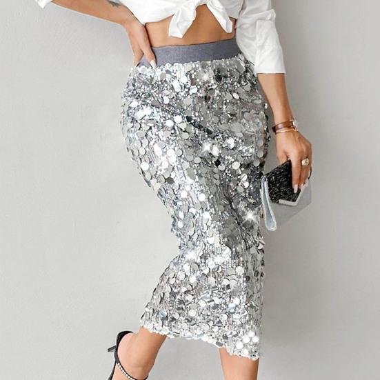 Diseño llamativo de lentejuelas: Con una silueta sexy que abraza las caderas adornada con lentejuelas brillantes, esta falda añade un toque glamuroso a tu atuendo. El detalle brillante atrapa la luz maravillosamente, ayudándote a destacar sin esfuerzo en cualquier evento o reunión social.