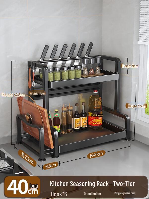 Cream Aluminum 2-Tier Kitchen Countertop Storage Rack