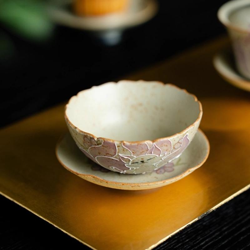 Ceramic teacup master cup pure hand-painted nine-tailed fairy fox flower sequence cup with coaster Chinese tea set
