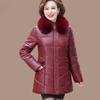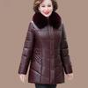Women's PU Leather Cotton Jacket Thick Warm Windproof Leather Jacket Loose Padded Jacket with Fur Collar