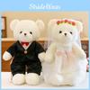 Plush Bear Wedding Gift With Rabbit Hair Ribbons For Celebration Decor