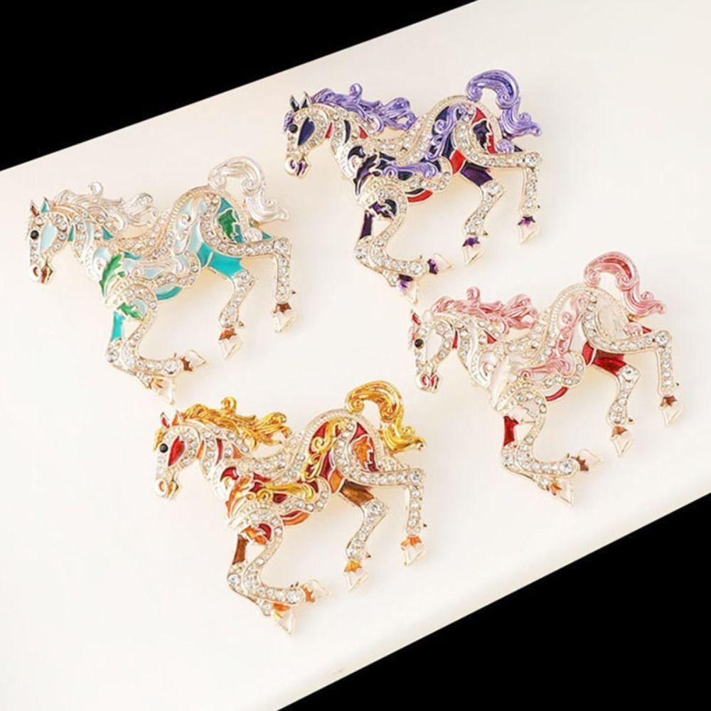 Metal Enamel Horse Brooch Pin Crystal Mascot Horse Lapel Pin New Year Horse Jewelry Party