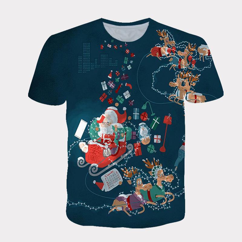 Kids T Shirts Couple Summer Christmas Tree 3D Digital Printing Casual Trendy Short Sleeve T-shirt