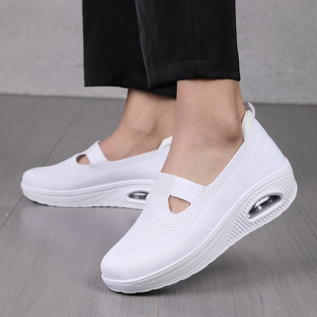 Summer new women's platform rocking shoes outdoor casual shoes lazy one-pedal women's shoes fly-woven upper