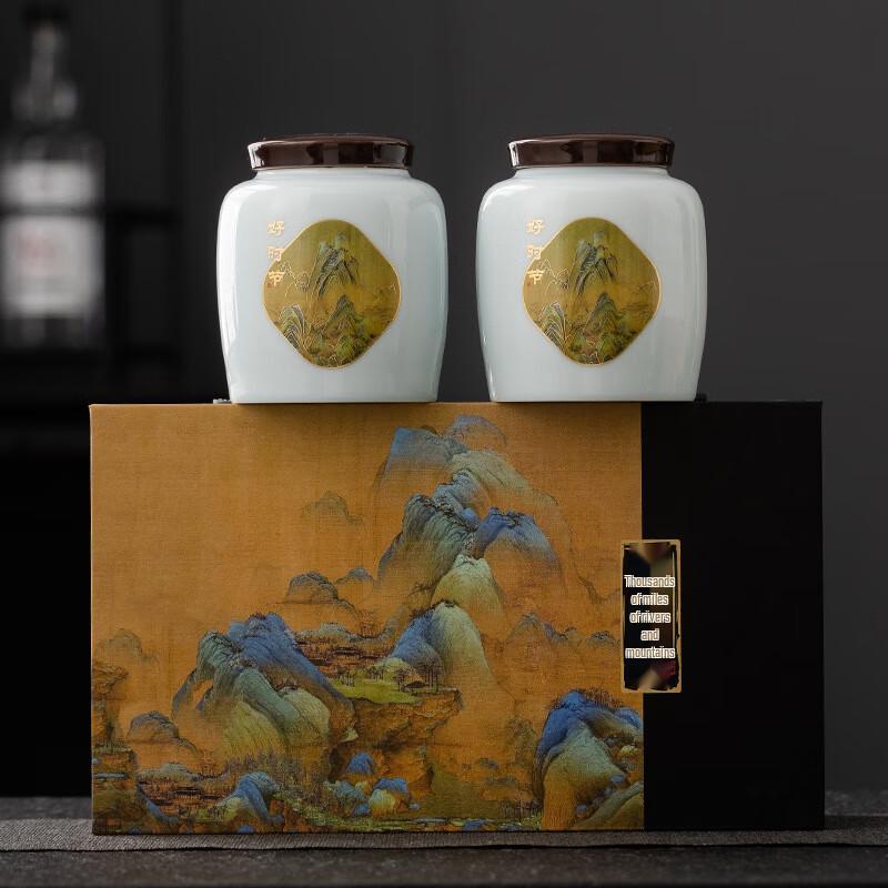 Junshiqian Thousand Li Rivers and Mountains Ceramic Tea Caddy Gift Set