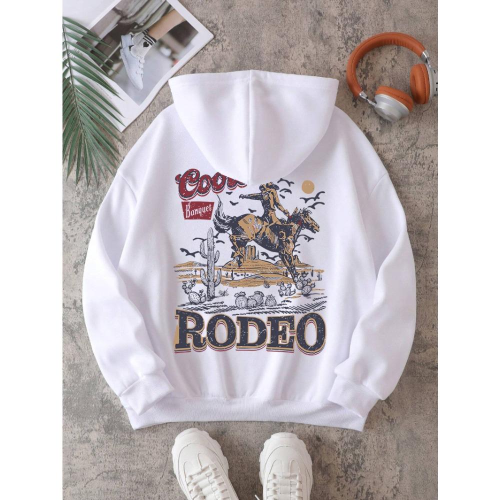 Rodeo Hoodie Women Vintage Cowboy Printing Hooded Warm Pocket Pullovers Autumn Winter Comfortable Woman Clothing