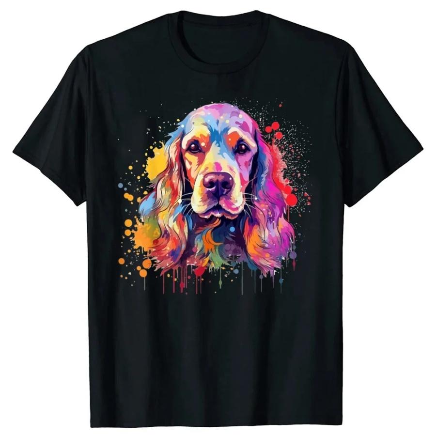 Colorful Splash Art Cocker Spaniel Dog T Shirt Graphic T Shirts Men Clothing Tee Tops Round Neck Short-Sleeve Tshirt Camisetas