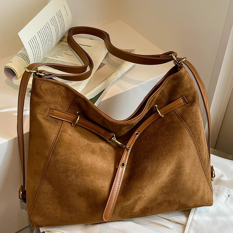Simple suede bag women's large-capacity autumn new casual shoulder messenger commuter tote bag backpack
