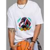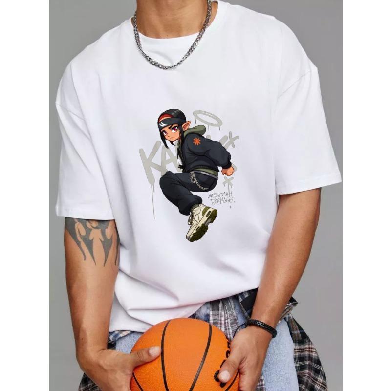 Crewneck T-Shirt White Anime Character Graffiti Print Streetwear Fashion Casual Wear