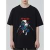 Black T-Shirt Samurai Warrior with Sword and Moon Print for Casual Wear